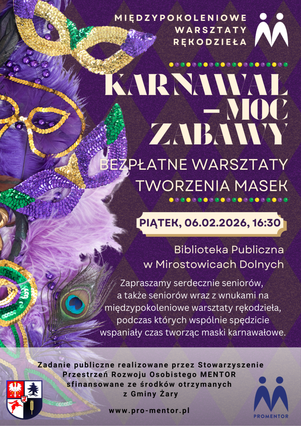 Szukacie pomysłu na to, jak kreatywnie spędzić czas ze swoją pociechą, babcią lub dziadkiem? Chcecie wspólnie stworzyć wyjątkowe maski karnawałowe? Zapraszamy serdecznie na międzypokoleniowe warsztaty rękodzieła, podczas których wiek nie[…]