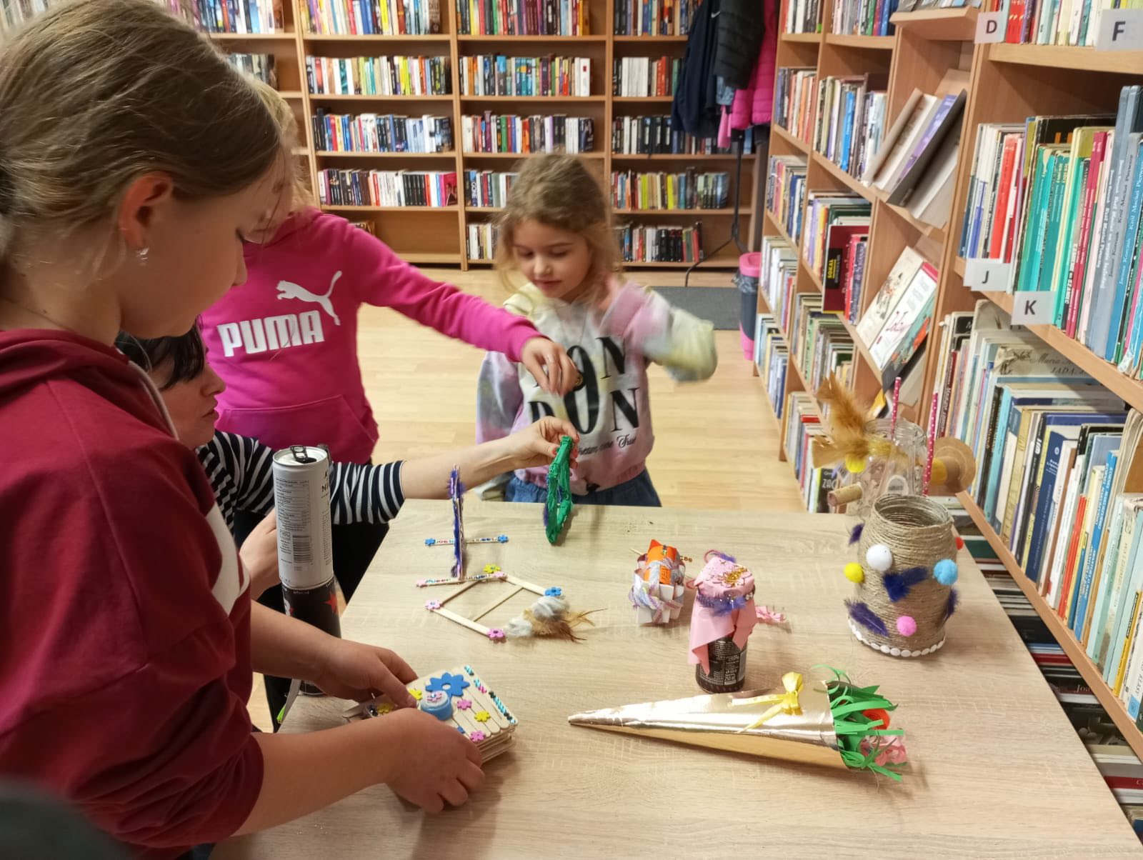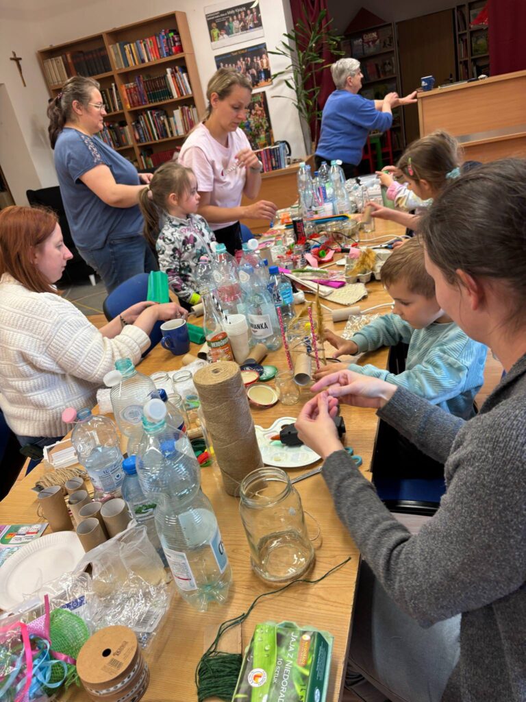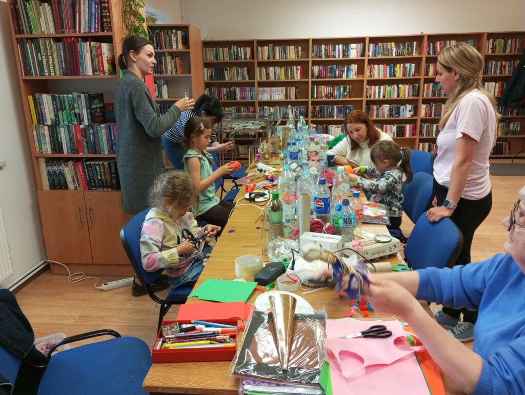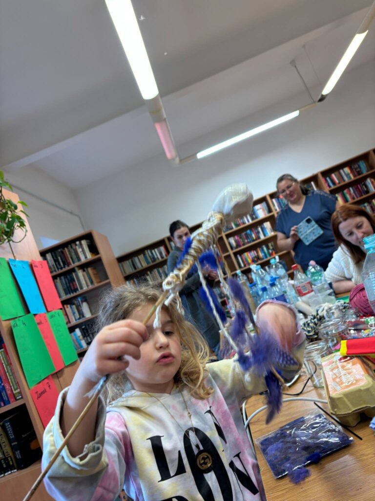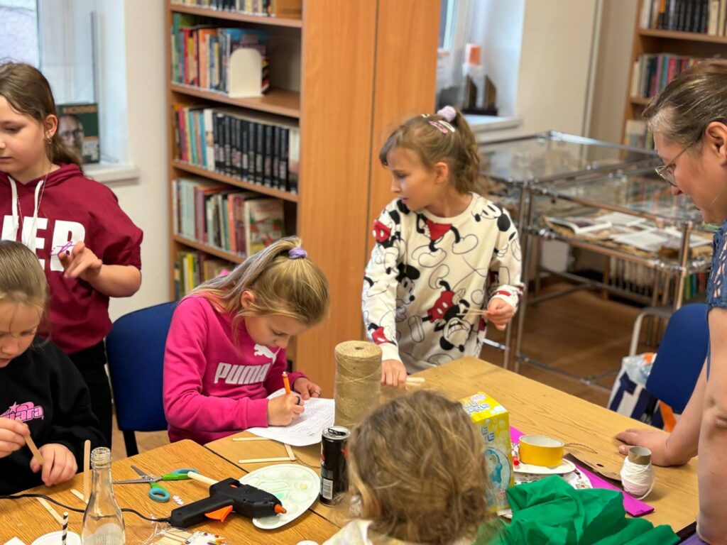 11 maja w kalendarzu widnieje dzień bez śmiecenia, w związku z tym postanowiliśmy to uczcić i zorganizowaliśmy Międzypokoleniowe Warsztaty Artystyczne pn. „Dzień bez śmiecenia- moc czystości”. Tym razem 22 maja spotkaliśmy się w Gminnej Bibliotece Publicznej w Złotniku, w której mieliśmy przyjemności wykorzystywać śmieci