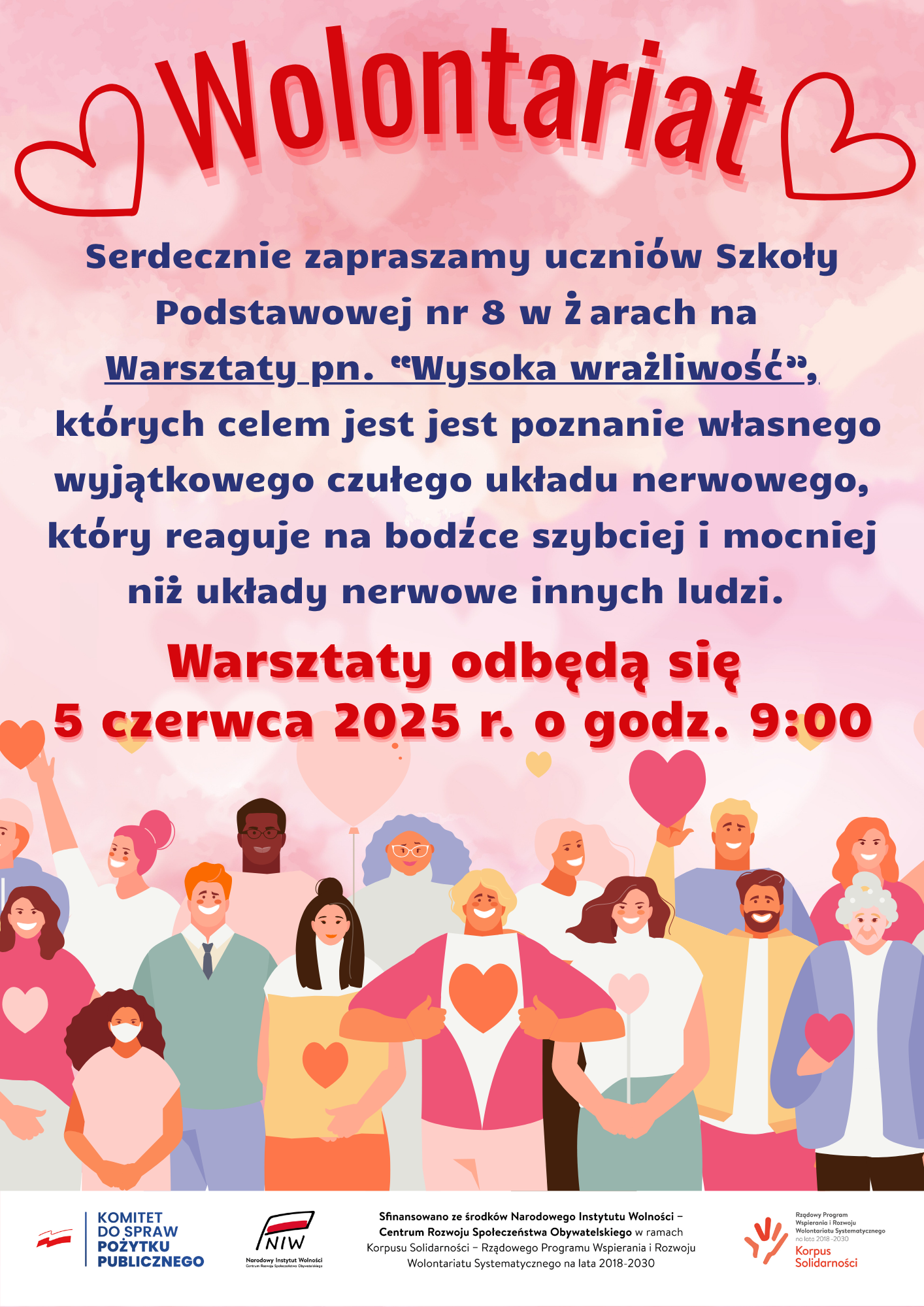 Projekt sfinansowany ze środków Narodowego Instytutu Wolności – Centrum Rozwoju Społeczeństwa Obywatelskiego w ramach Korpusu Solidarności – Rządowego Programu Wspierania i Rozwoju Wolontariatu Systematycznego na lata 2018-2030. Dofinansowanie przyznano w ramach konkursu „Partnerstwo dla Wolontariatu, Edycja 2024 – 2026, Priorytet 2 – Lokalny”.